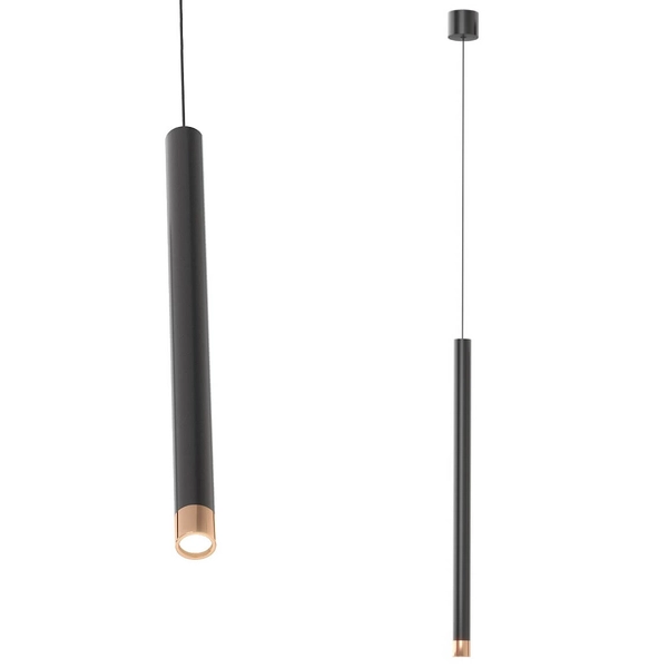 Wisząca lampa kierunkowa Q I sopel czarny do salonu tuba łączy w sobie wyjątkowy design oraz uniwersalny i ponadczasowy styl, co stwarza szereg możliwości zastosowania w Twoim Domu. Unikalna forma oświetlenia, zaakcentuje wystrój pomieszczeń, a blask światła wprowadzi komfortową i przytulną atmosferę, sprzyjającą spotkaniom towarzyskim jak i spędzaniu czasu wśród najbliższych.Oświetlenie z serii Q cechuje się funkcjonalnością i praktycznością. Gustowne połączenie kolorów oprawy: czarny oraz różowe złoto i zastosowanych w oprawie materiałów: metal | stal oraz aluminium sprawi, że znajdzie zastosowanie zarówno w ciemnych jak i w jasnych wnętrzach.