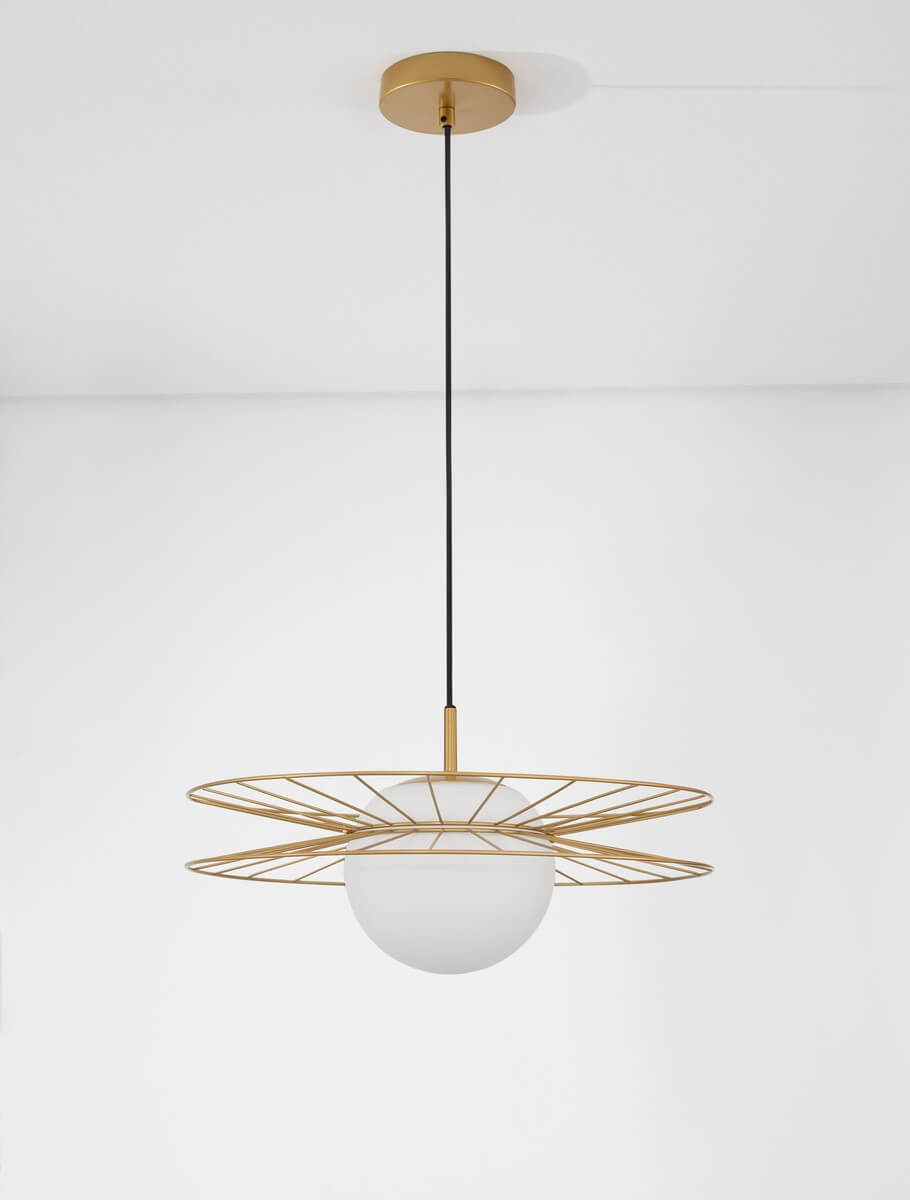 Wisząca lampa MORELOS druciak do kuchni złoty biały łączy w sobie wyjątkowy design oraz uniwersalny i ponadczasowy styl. co stwarza szereg możliwości zastosowania w Twoim Domu. Unikalna forma oświetlenia. zaakcentuje wystrój pomieszczeń. a blask światła wprowadzi komfortową i przytulną atmosferę sprzyjającą spotkaniom towarzyskim jak i spędzaniu czasu wśród najbliższych.Oświetlenie z serii MORELOS cechuje się funkcjonalnością i praktycznością. Gustowne połączenie kolorów oprawy: złoty oraz i zastosowanych w oprawie materiałów: Metal | stal oraz Szkło sprawi że znajdzie zastosowanie zarówno w ciemnych jak i w jasnych wnętrzach.