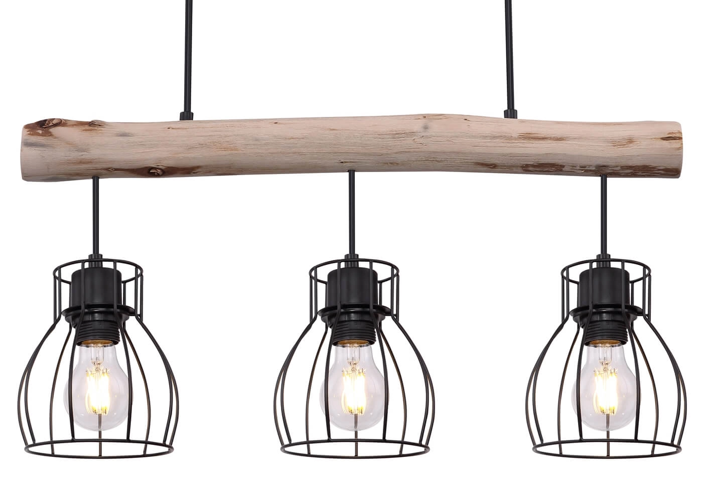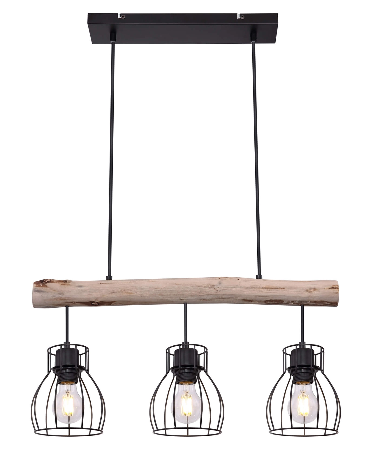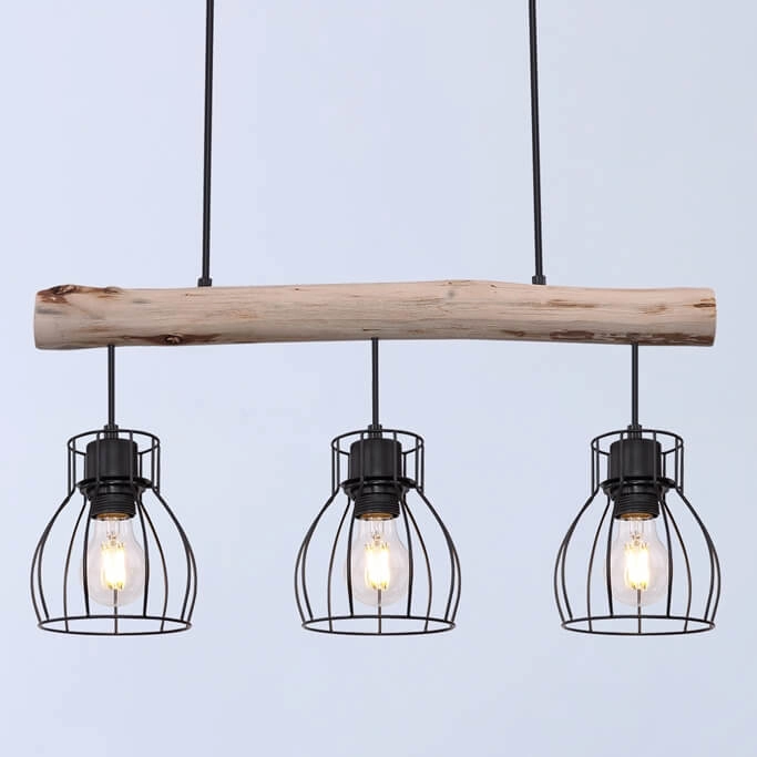 Wisząca lampa Mina 15326-3N belka z druciakami czarna drewno