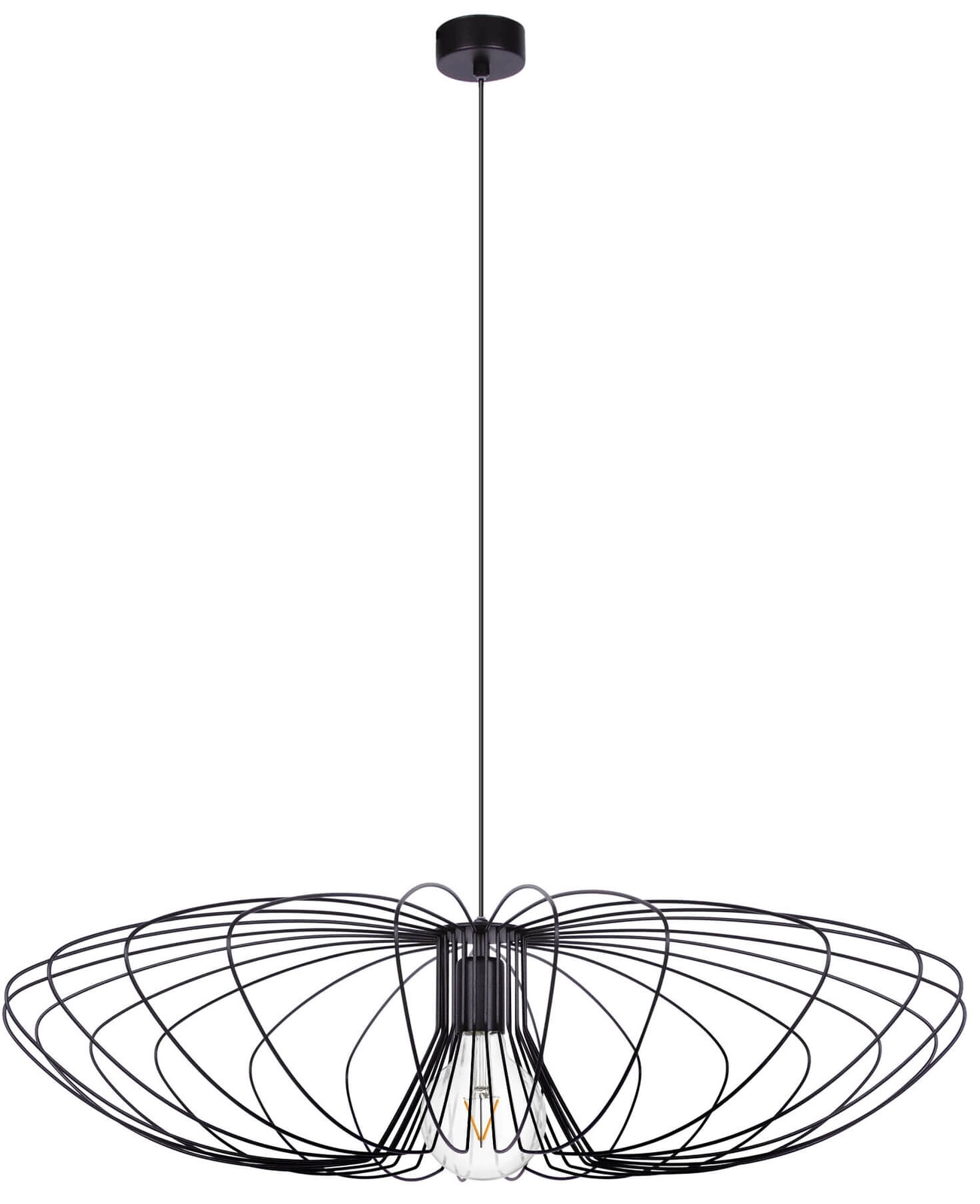 Wisząca lampa Tizi K-3409 industrialny druciak czarny w MLAMP łączy w sobie wyjątkowy i ponadczasowy design w najlepszym wydaniu, co stwarza szereg możliwości aranżacji przestrzeni w Twoim Domu. Oświetlenie z łatwością wkomponuje się w pomieszczenia o klasycznym i nowoczesnym klimacie.Lampa cechuje się funkcjonalnością Materiał zastosowany w lampie to Kapelusz jest wykonany z praktycznych i trwałych materiałów, gwarantując jego użytkownikom radość i zadowolenie na wiele lat. Gustowny kolor czarny lampy sprawi, że lampa sprawdzi się zarówno w jasnych, jak i ciemnych wnętrzach. Materiał zastosowany w lampie to Metal dzięki temu będzie ona łatwa w pielęgnacji i w utrzymaniu czystości.