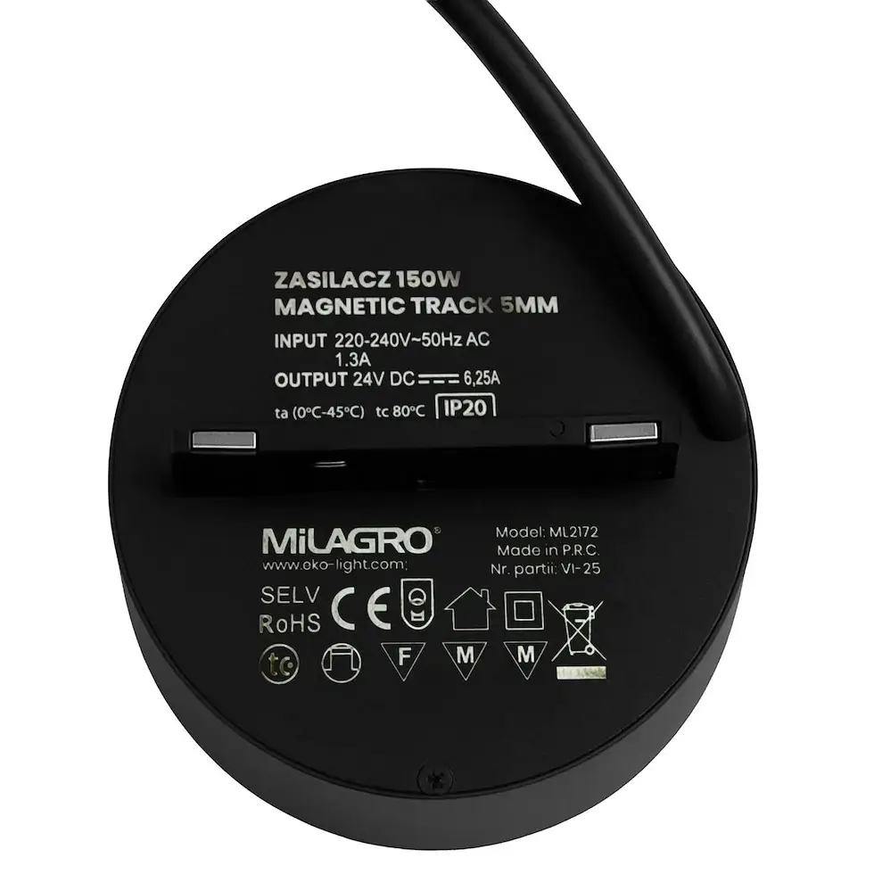 Zasilacz do szyn magnetycznych 150W Magnetic Track ML2172 okrągły czarny