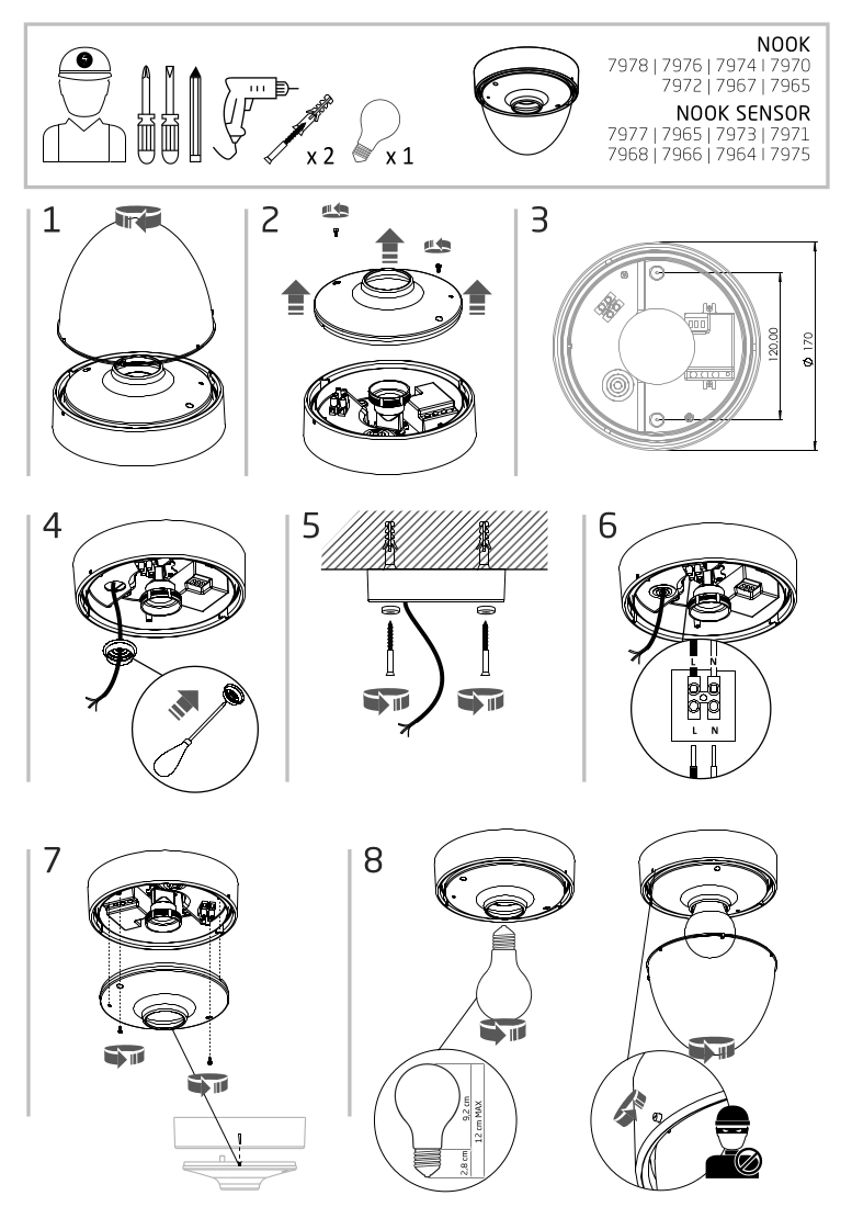 Wybierając model NOOK zyskasz zachwycającą i cieszącą oko dekorację, która nada przestrzeniom niepowtarzalnego wyglądu i elegancji. Lampa posiada miejsce na 1 źródeł światła , o stopniu szczelności IP44.