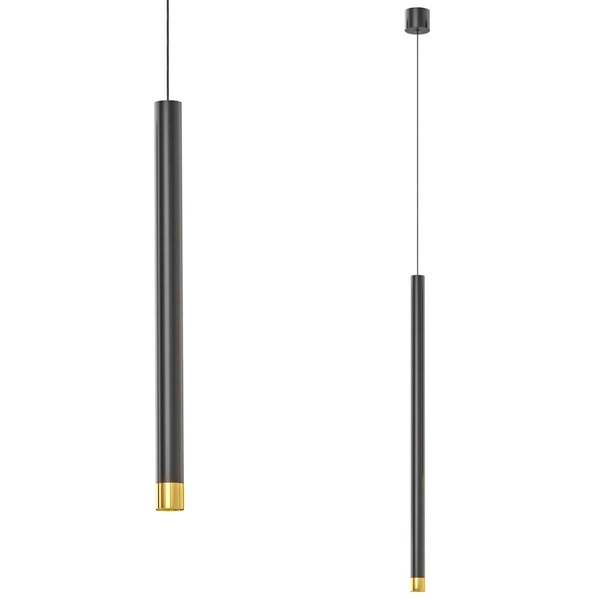 Zwis nad łóżko Q I wisząca lampa sopel czarno złoty tuba łączy w sobie wyjątkowy design oraz uniwersalny i ponadczasowy styl, co stwarza szereg możliwości zastosowania w Twoim Domu. Unikalna forma oświetlenia, zaakcentuje wystrój pomieszczeń, a blask światła wprowadzi komfortową i przytulną atmosferę, sprzyjającą spotkaniom towarzyskim jak i spędzaniu czasu wśród najbliższych.Oświetlenie z serii Q cechuje się funkcjonalnością i praktycznością. Gustowne połączenie kolorów oprawy: czarny oraz złoty i zastosowanych w oprawie materiałów: metal | stal oraz aluminium sprawi, że znajdzie zastosowanie zarówno w ciemnych jak i w jasnych wnętrzach.