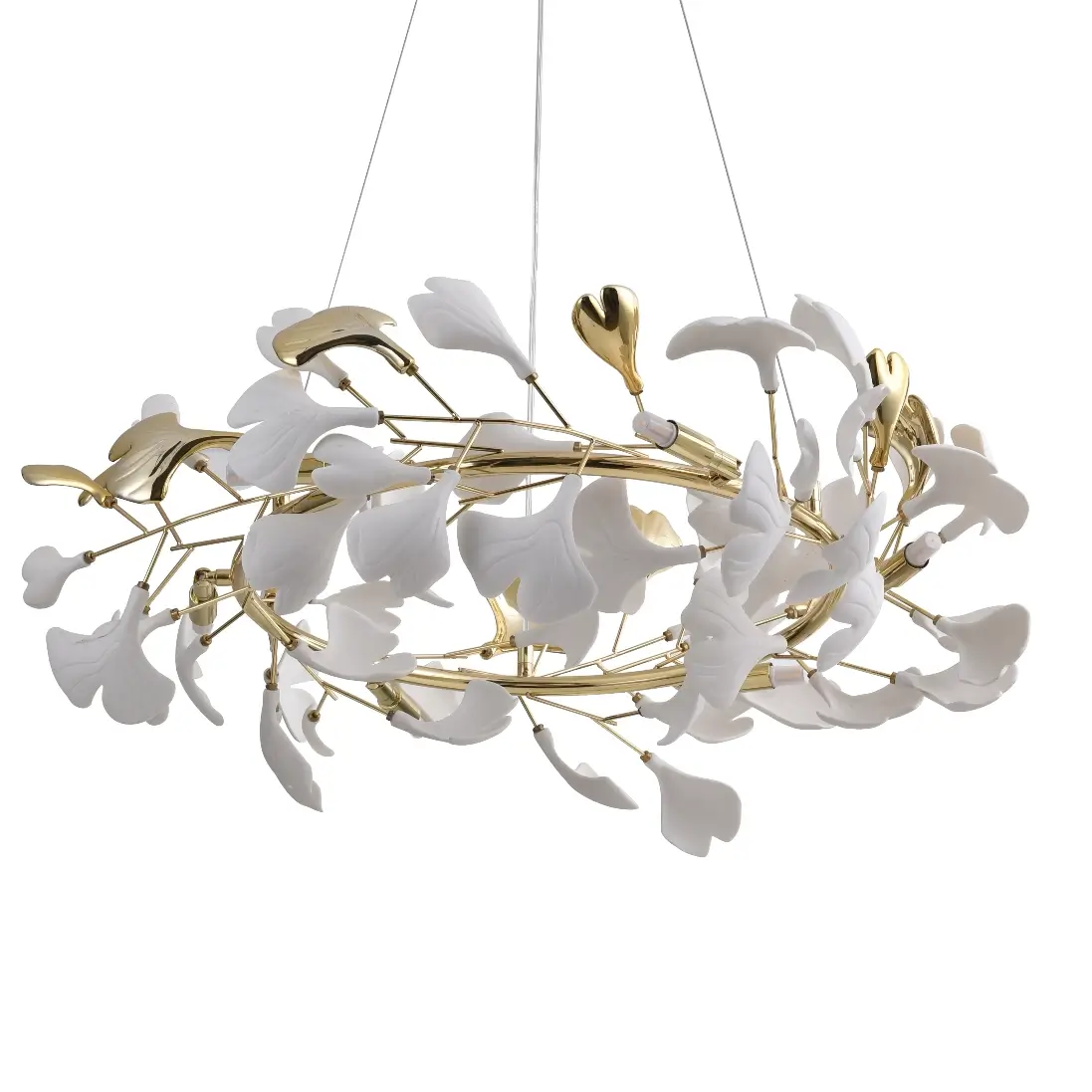 Żyrandol glamour Leaf MD2858-6AS-G ring motyw kwiatów złoty biały