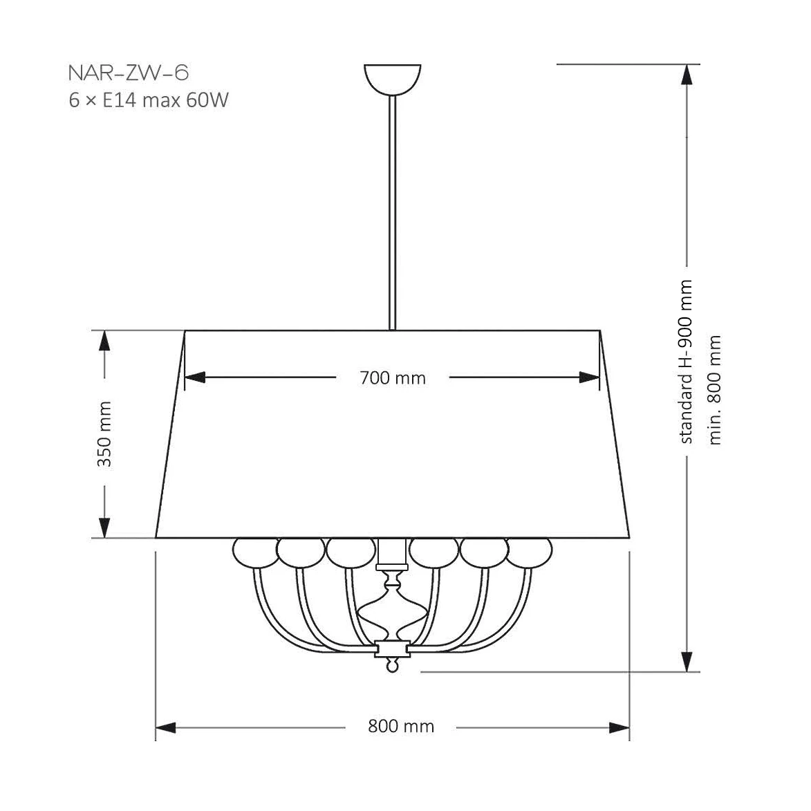 Lampa posiada miejsce na 6 energooszczędnych źródeł światła LED E14 oraz została wyposażona w stopień ochrony szczelności IP20. Jeśli nie wiesz jaki rodzaj oświetlenia wybrać do oświetlenia przestrzeni wypoczynkowych lub biurowych to oprawa z serii Narni z pewnością się w nich sprawdzi.