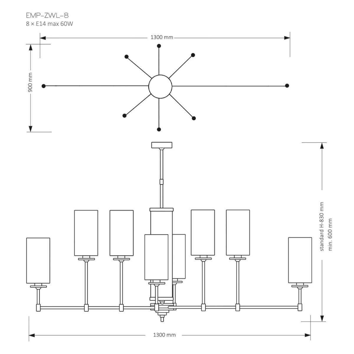 Lampa posiada miejsce na 8 energooszczędnych źródeł światła LED E14 oraz została wyposażona w stopień ochrony szczelności IP20. Jeśli nie wiesz jaki rodzaj oświetlenia wybrać do oświetlenia przestrzeni wypoczynkowych lub biurowych to oprawa z serii Empoli z pewnością się w nich sprawdzi.