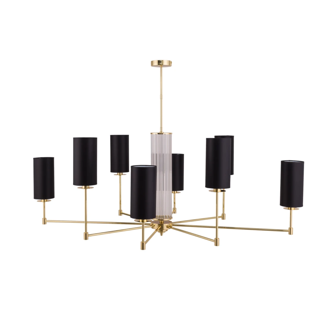Żyrandol z abażurami Empoli EMP-ZWL-8 (Z) podłużne tuby czarne mosiądz