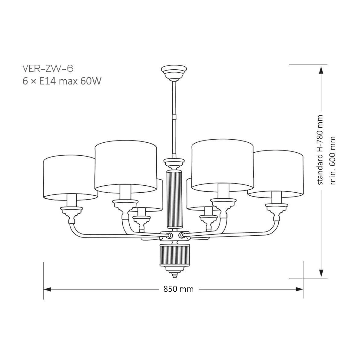 Lampa posiada miejsce na 6 energooszczędnych źródeł światła LED E14 oraz została wyposażona w stopień ochrony szczelności IP20. Jeśli nie wiesz jaki rodzaj oświetlenia wybrać do oświetlenia przestrzeni wypoczynkowych lub biurowych to oprawa z serii Verde z pewnością się w nich sprawdzi.